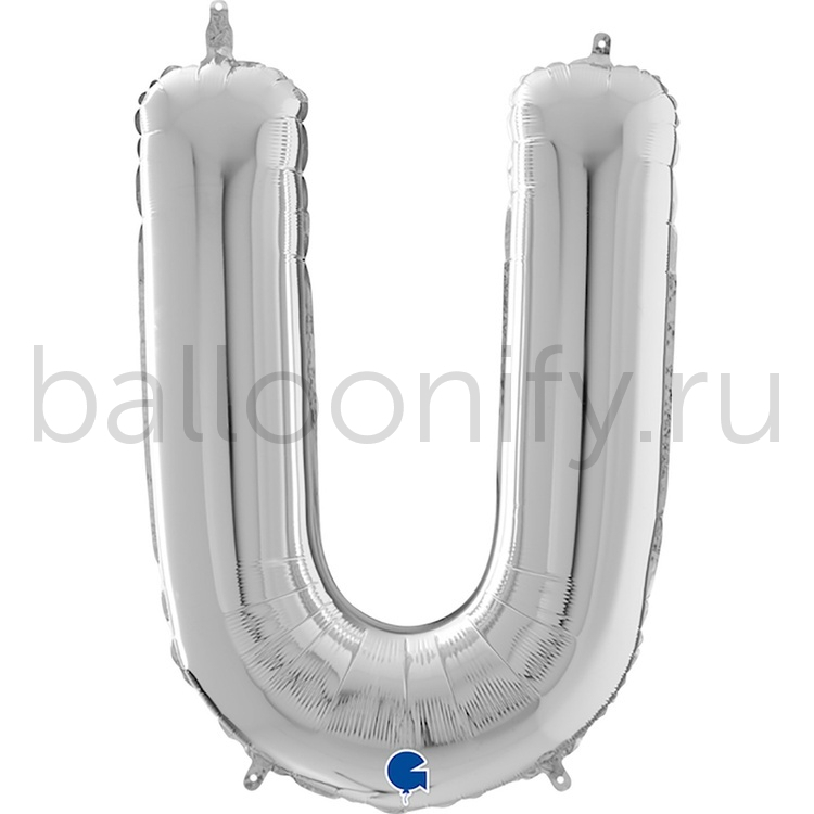Фольгированная фигура, Буква U 66 см Silver