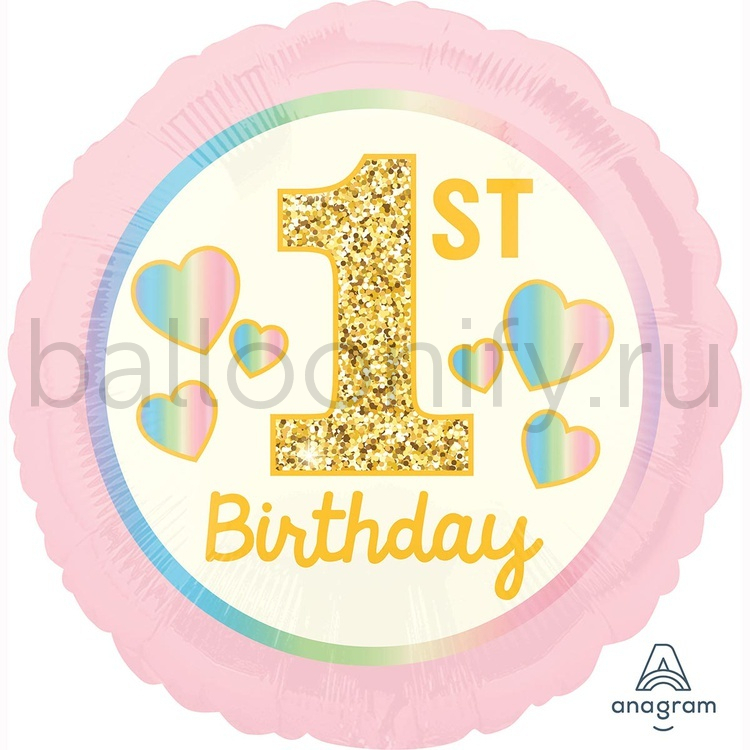 Фольгированная фигура, круг, 1-й ДР Девочка Сердца PinkGold S40,18"/46СМ
