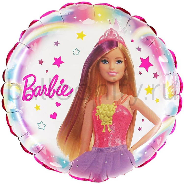 Фольгированная фигура, круг, Барби,18"/46СМ