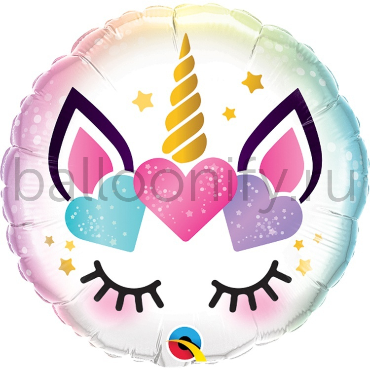 Фольгированная фигура, круг, Единорог Ресницы,18" / 45СМ