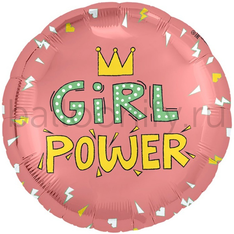 Фольгированная фигура, круг, GIRL POWER,18"/46СМ