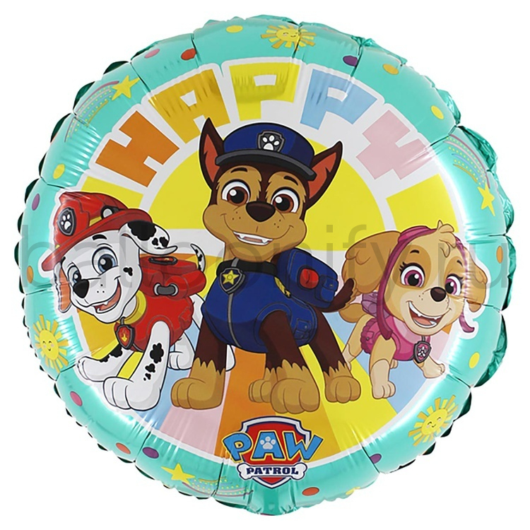 Фольгированная фигура, круг, HAPPY Щенячий Патруль,18"/46СМ