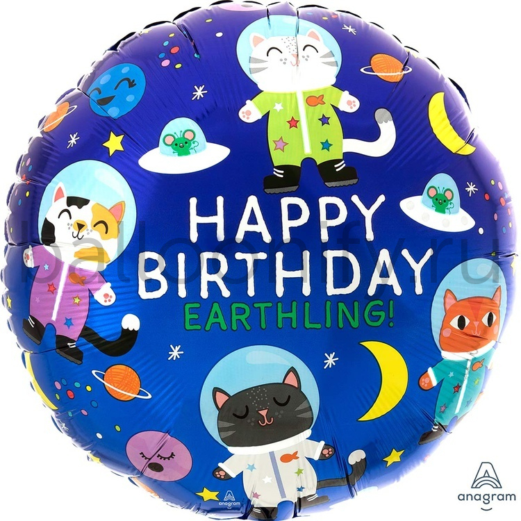 Фольгированная фигура, круг, HB Кошки-космонавты S40,18"/46СМ