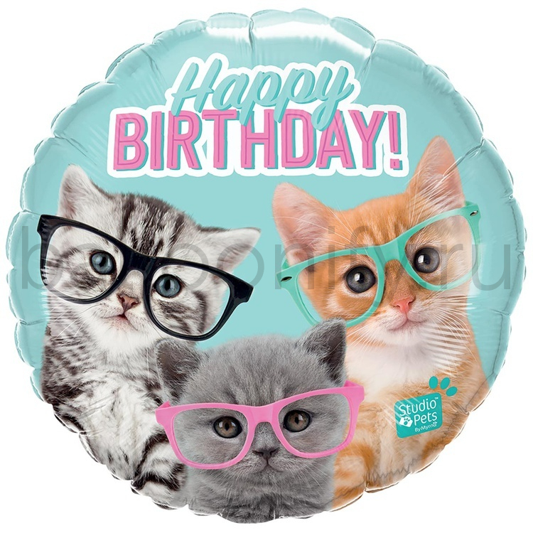 Фольгированная фигура, круг, HB Котята в очках,18"/45CM