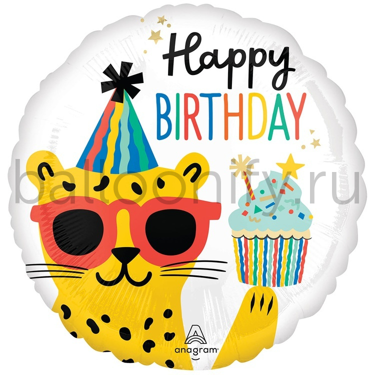 Фольгированная фигура, круг, HB Леопард в очках и колпаке S40,18"/ 46СМ