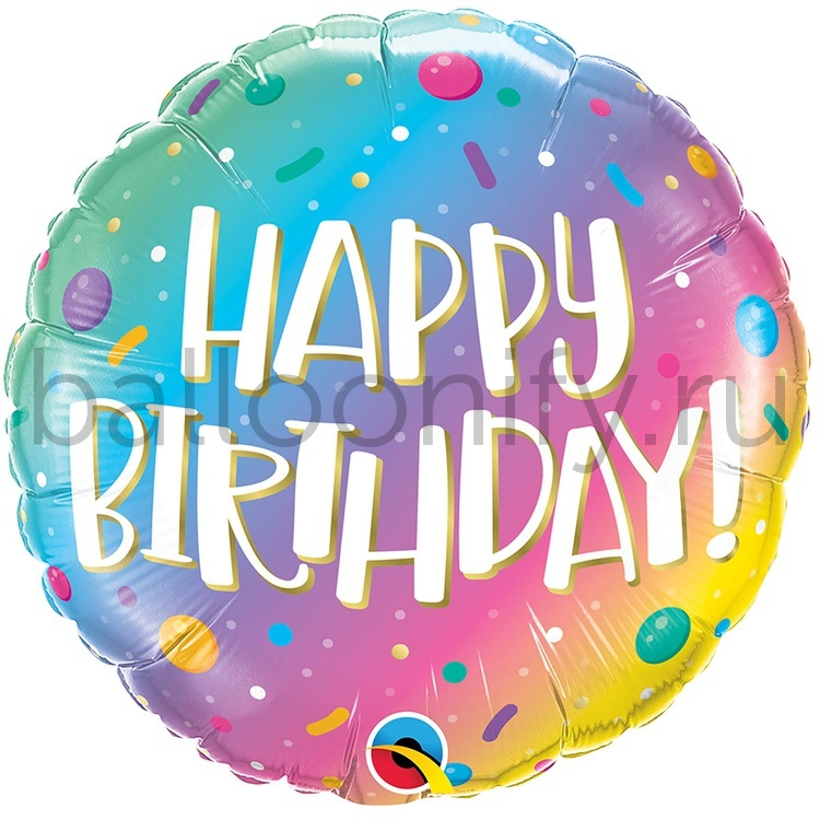 Фольгированная фигура, круг, HB Омбре Конфетти радужное,18" / 45СМ