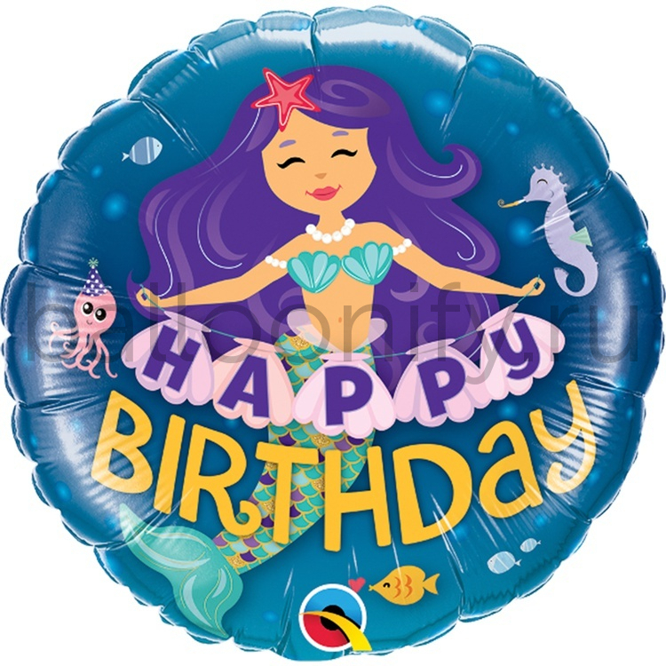 Фольгированная фигура, круг, HB Русалка фиолетовые волосы,18" / 45СМ