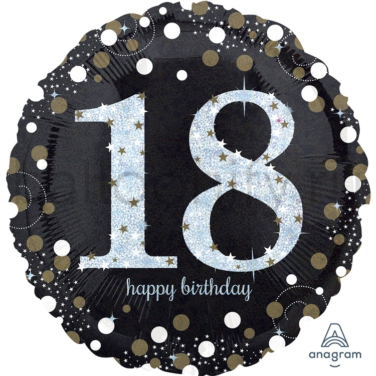 Фольгированная фигура, круг, HB Sparkling Birthday 18 gold S55,18"/46СМ