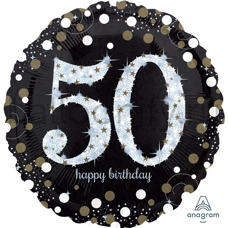 Фольгированная фигура, круг, HB Sparkling Birthday 50 gold S55,18"/46СМ