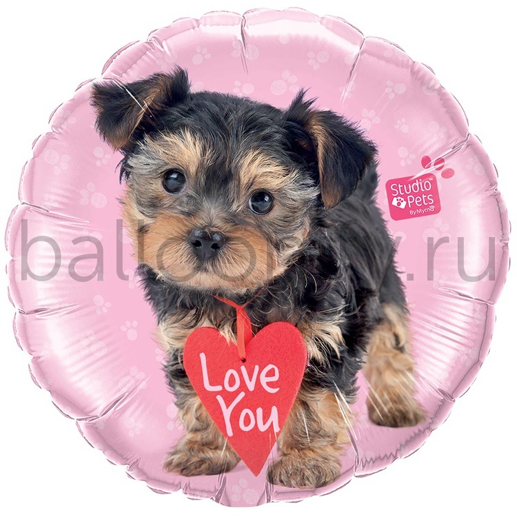 Фольгированная фигура, круг, ILY Щенок Терьер,18"/46СМ