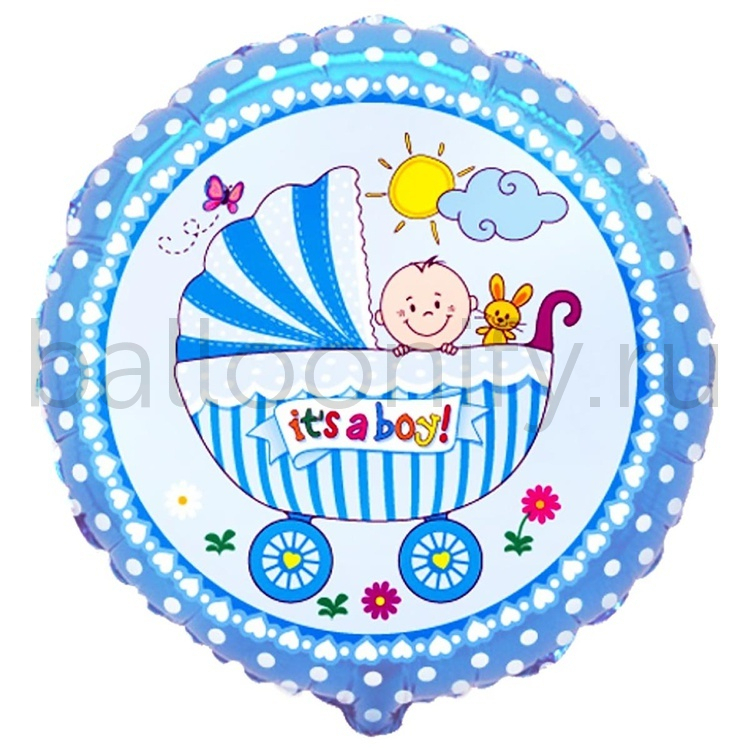 Фольгированная фигура, круг, Коляска и малыш мальчик/FM,18"/46СМ