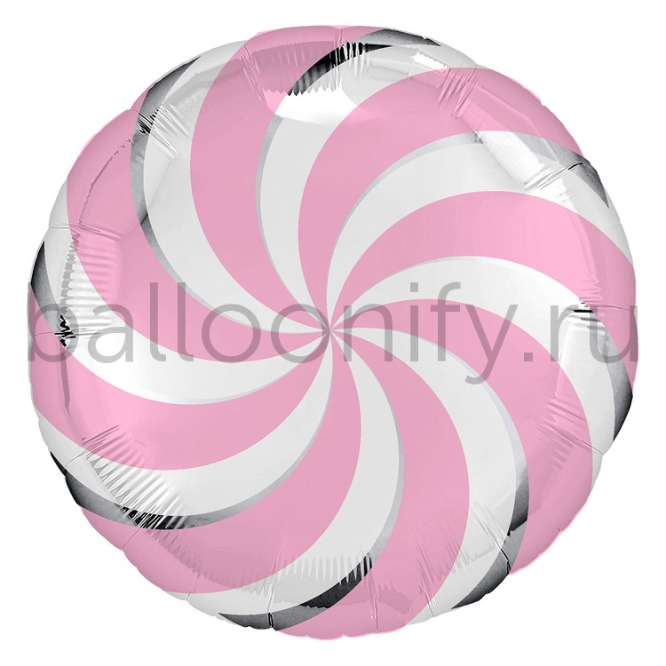 Фольгированная фигура, круг, Леденец розовый,18"/46СМ
