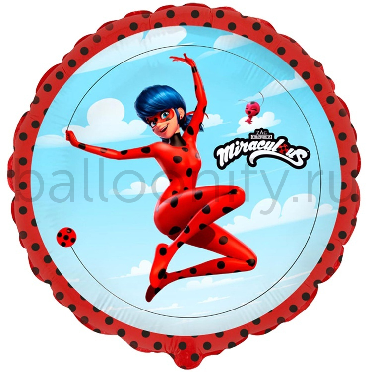 Фольгированная фигура, круг, Леди Баг в полёте/FM,18"/46СМ