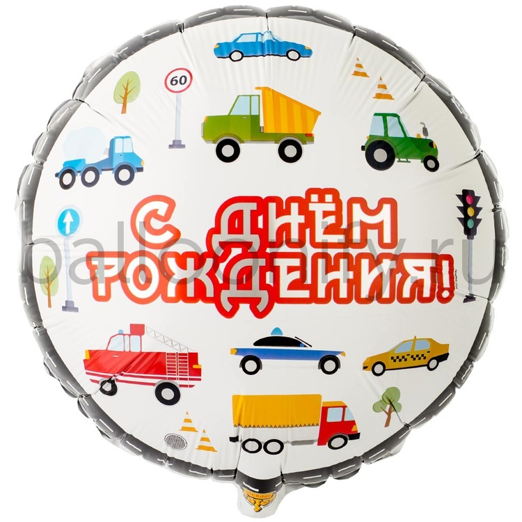 Фольгированная фигура, круг, РУС ДР Машинки,18"/46СМ