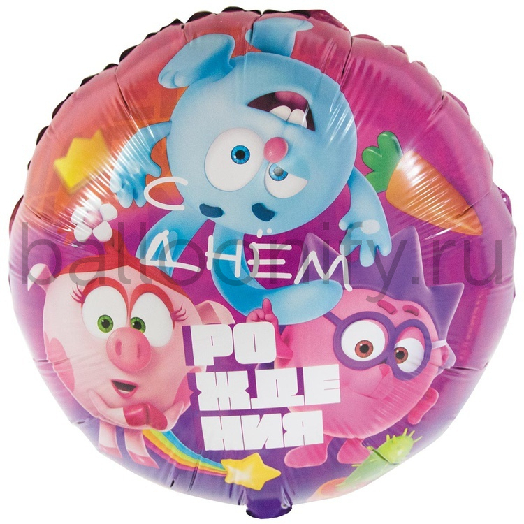 Фольгированная фигура, круг, РУС ДР Смешарики Яркие,18"/46СМ