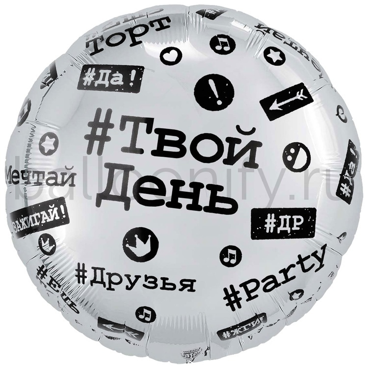 Фольгированная фигура, круг, РУС Хештеги,18"/46СМ