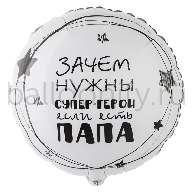 Фольгированная фигура, круг, РУС ПАПА СУПЕР ГЕРОЙ,18"/46СМ