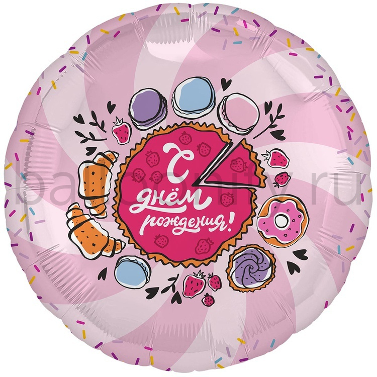 Фольгированная фигура, круг, РУС С ДР Тортик,18"/46СМ