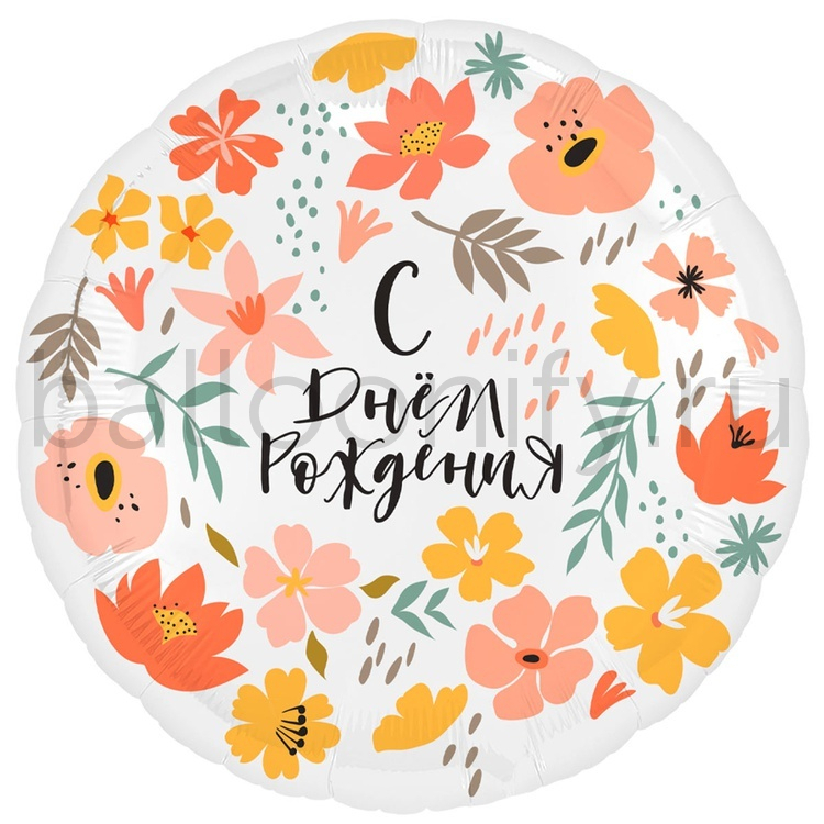 Фольгированная фигура, круг, РУС С ДР Цветы,18"/46СМ