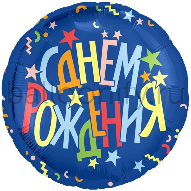 Фольгированная фигура, круг, РУС С ДР Звезды,18"/46СМ