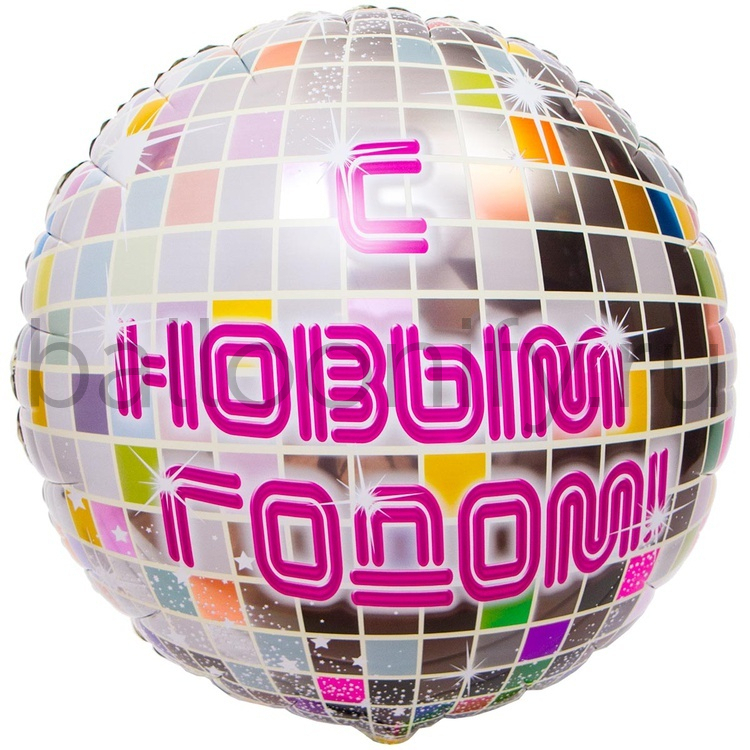 Фольгированная фигура, круг, РУС С НОВЫМ ГОДОМ Диско-шар,