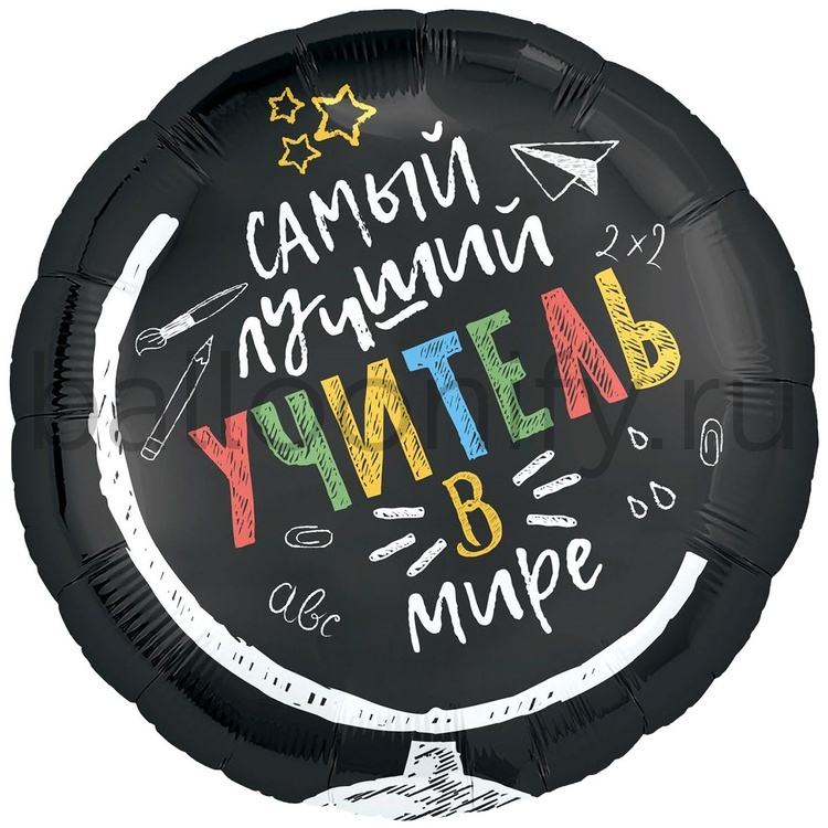 Фольгированная фигура, круг, РУС САМЫЙ ЛУЧШИЙ УЧИТЕЛЬ В МИРЕ,18"/46СМ