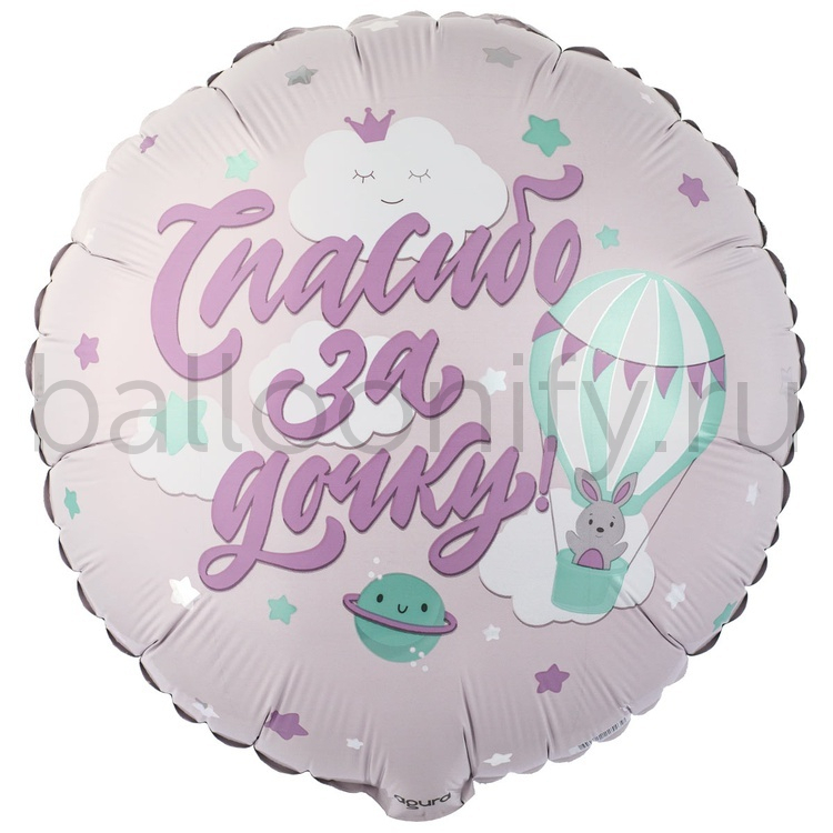 Фольгированная фигура, круг, РУС СПАСИБО ЗА ДОЧКУ Зайка на шаре,18"/46СМ