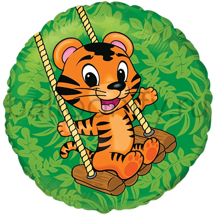 Фольгированная фигура, круг, Тигренок на качелях/FM,18"/46СМ