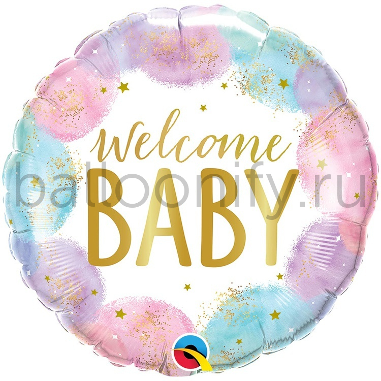 Фольгированная фигура, круг, WELCOME BABY Акварель,18"/45CM