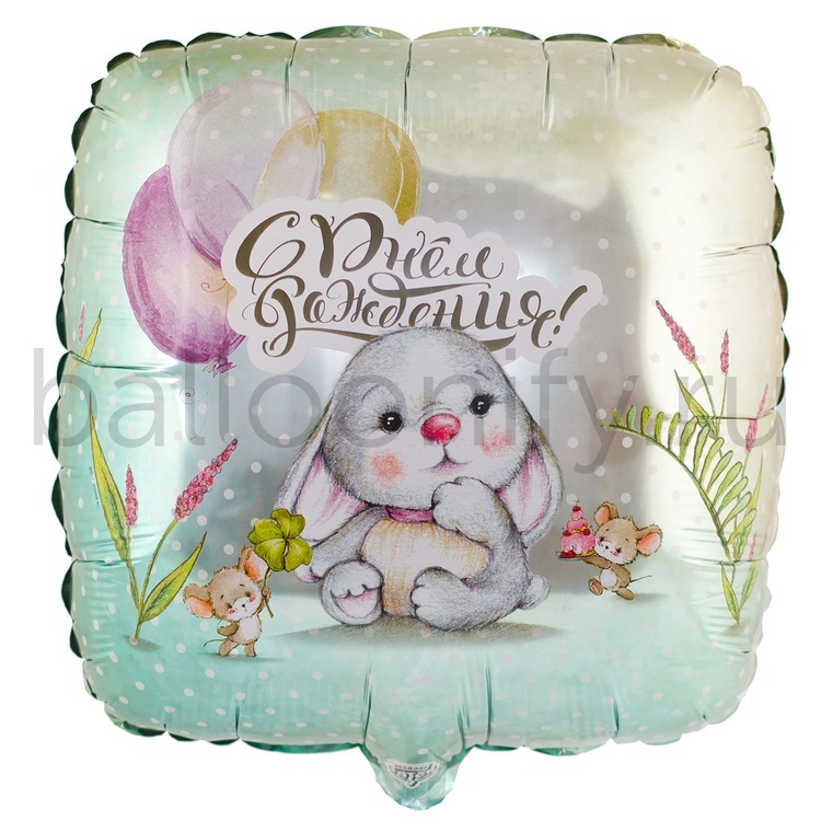 Фольгированная фигура, квадрат, РУС ДР Зайка и мышки 18"/46СМ