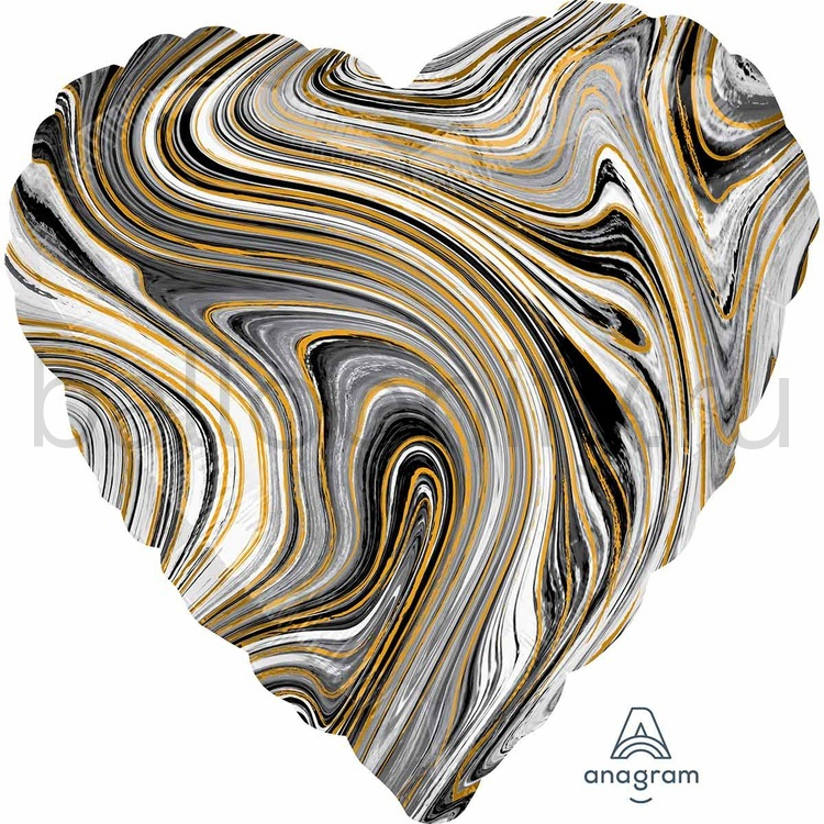 Фольгированная фигура, сердце, 18"/46 CM Мрамор Black