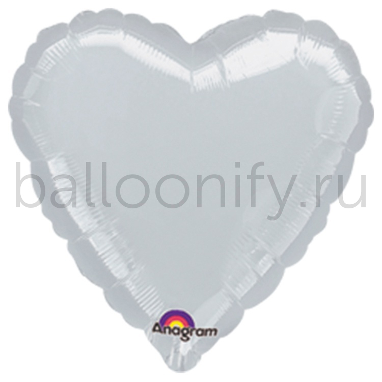 Фольгированная фигура, сердце, 18"/46СМ Металлик Silver