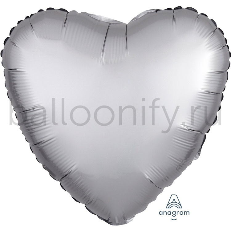 Фольгированная фигура, сердце, 18"/46СМ Сатин Platinum