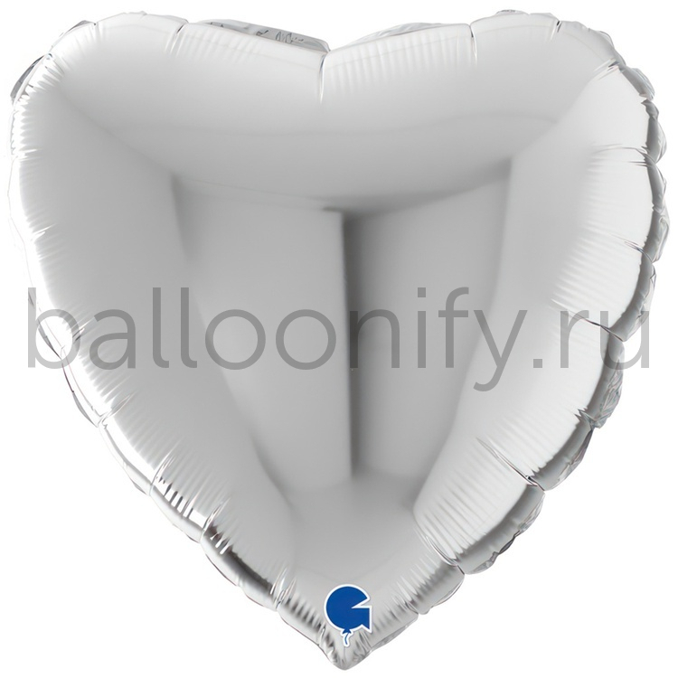 Фольгированная фигура, сердце, 22"/56СМ Металлик Silver
