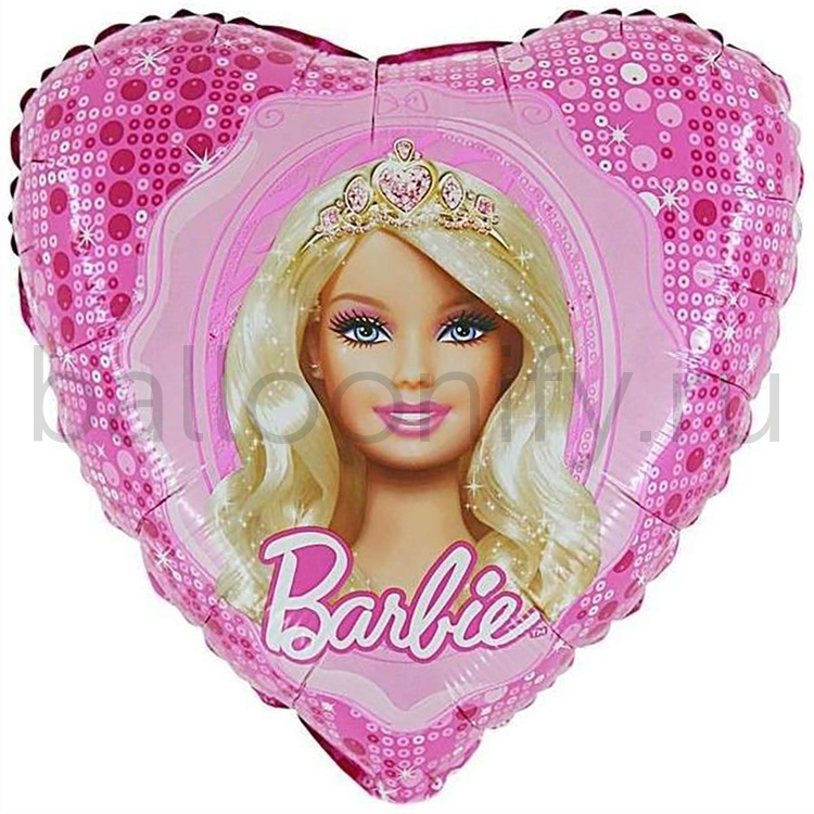 Фольгированная фигура, сердце, Барби в зеркале,18"/46СМ