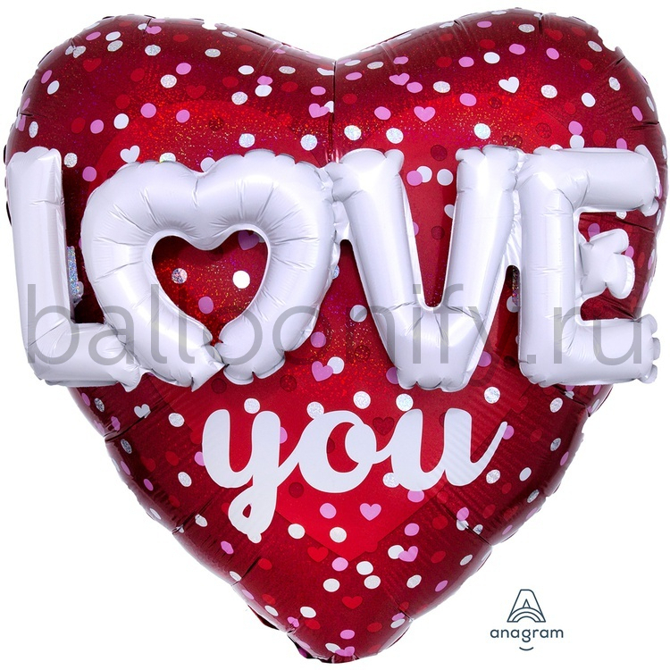 Фольгированная фигура, сердце, Буквы 3D cердце гологр P75,36"/91СМ