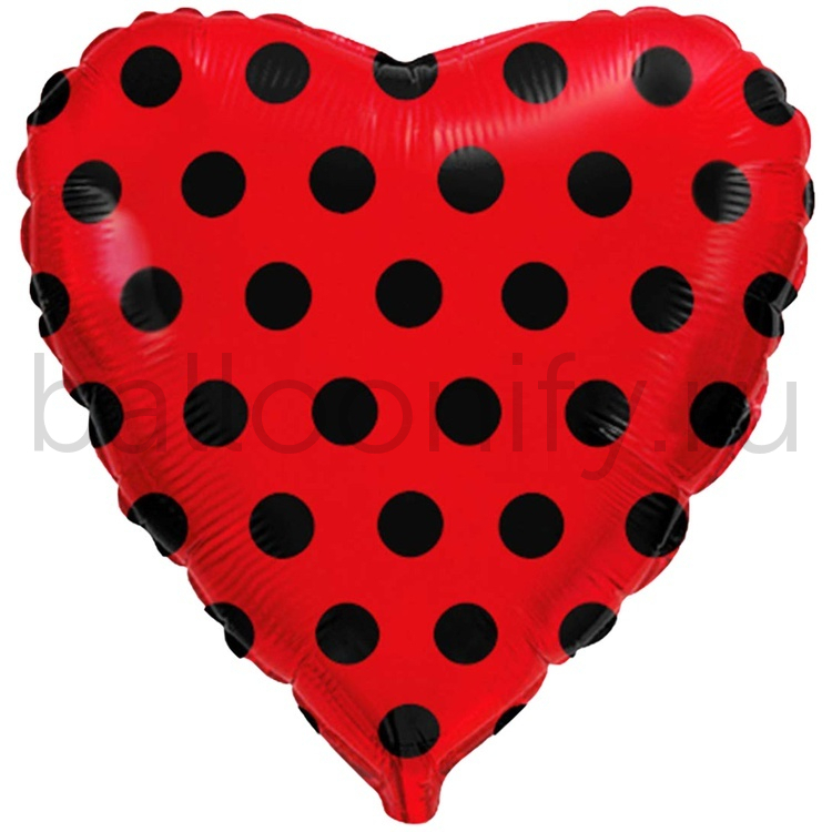 Фольгированная фигура, сердце, Горошек черный на красном/FM,18"/46СМ