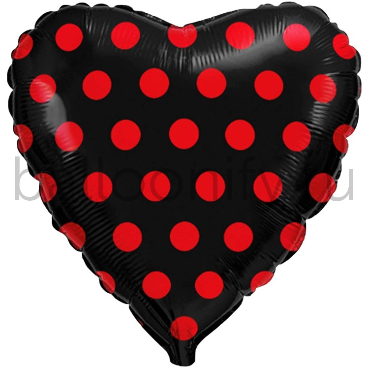 Фольгированная фигура, сердце, Горошек красный на черном/FM,18"/46СМ