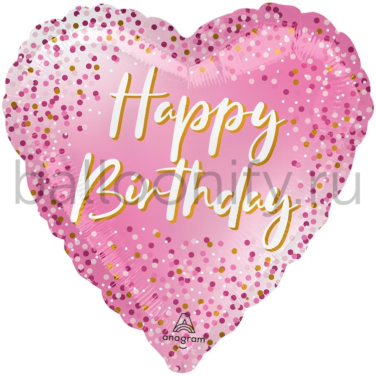 Фольгированная фигура, сердце, HB Сердце розовое с конфетти S40,18"/46СМ