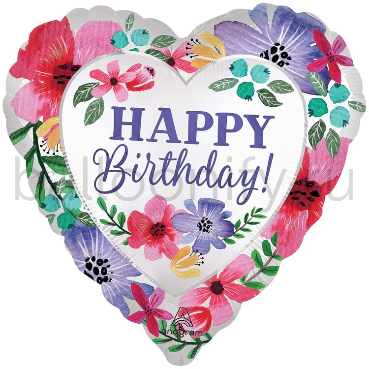 Фольгированная фигура, сердце, HB Цветы яркие сердце сатин S40,18"/46СМ