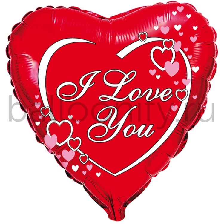 Фольгированная фигура, сердце, ILY Сердца на красном фоне(FM),18"/46СМ
