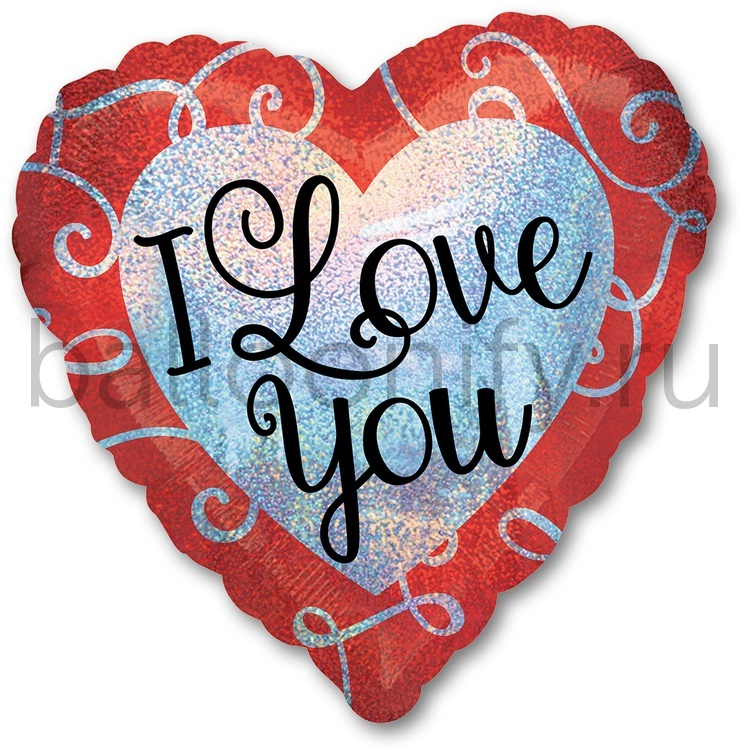 Фольгированная фигура, сердце, ILY Сердце с завитками гологр S55,18"/46СМ
