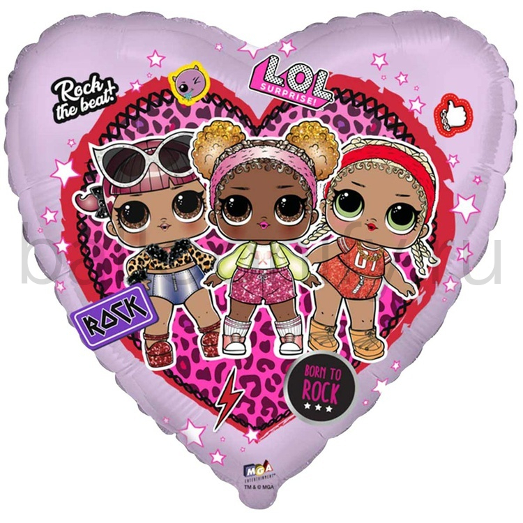 Фольгированная фигура, сердце, Куклы ЛОЛ в сердце/FM,18"/46СМ
