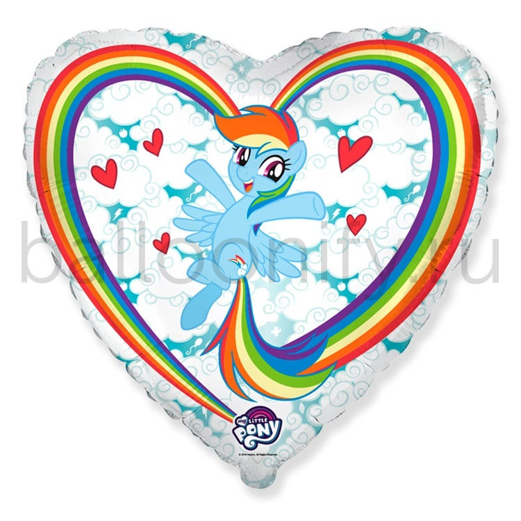 Фольгированная фигура, сердце, Пони в облаках/FM,18"/46СМ