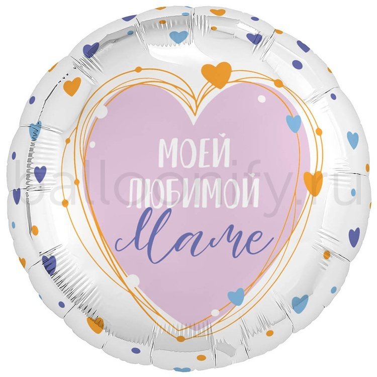 Фольгированная фигура, сердце, РУС МОЕЙ ЛЮБИМОЙ МАМЕ Сердца,18"/46СМ