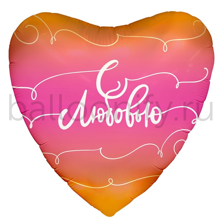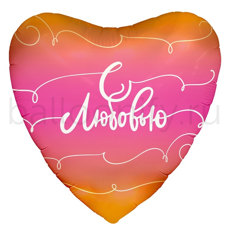 Фольгированная фигура, сердце, РУС С ЛЮБОВЬЮ Росчерки,18"/46СМ
