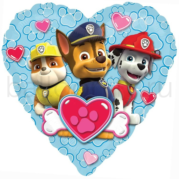 Фольгированная фигура, сердце, Щенячий Патруль сердце голубое S60,18"/46СМ