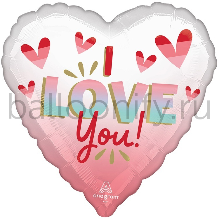 Фольгированная фигура, сердце, Сердце Омбре бело-розовое S40,18"/46СМ