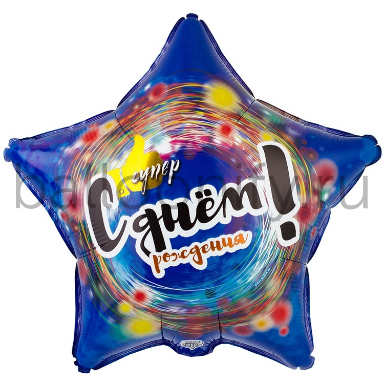 Фольгированная фигура, звезда с рисунком, ДР СУПЕР, 18"/46СМ