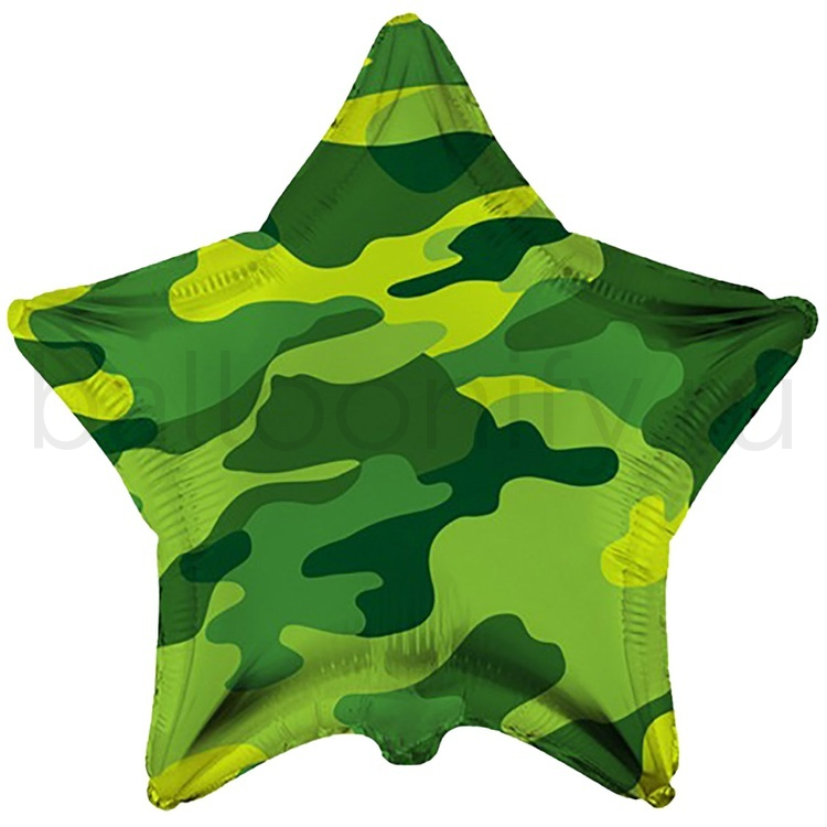 Фольгированная фигура, звезда с рисунком, Камуфляж, 18"/46СМ